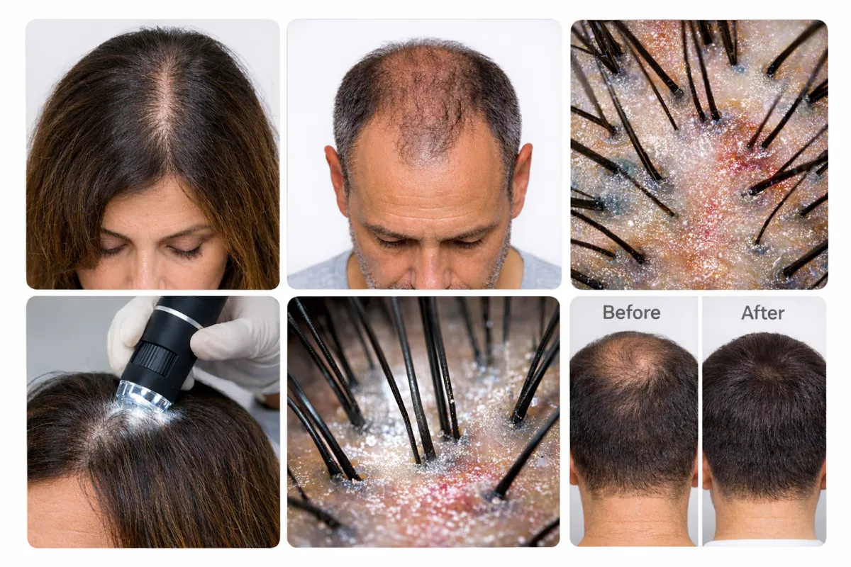 Not at all. The process is completely noninvasive. We examine the scalp, discuss your history, and map out your personalized plan. No needles, no surgery, and no downtime.